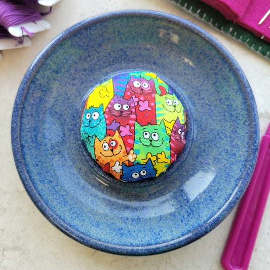 Sewing Pincushion and Notions Holder Rainbow Cat Blue