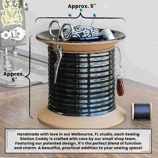 Keep your sewing space organized, efficient and inspired. Our handmade Sewing Station Caddies and Pincushion Dishes are crafted for sewists who want beautiful tools that also solve real workspace frustrations - cluttered tables, missing scissors and limited room for notions. Whether you quilt, garment-sew or enjoy weekend projects, these tools help you stay organized and enjoy a smoother creative flow.