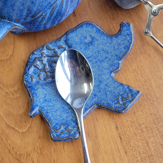 Blue Elephant Spoon Rest – Mini Ceramic Kitchen Holder