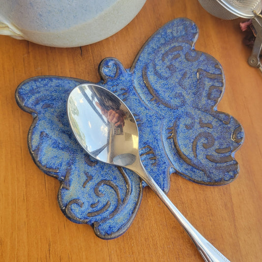 Blue Butterfly Mini Spoon Rest – Teaspoon Holder or Trinket Dish