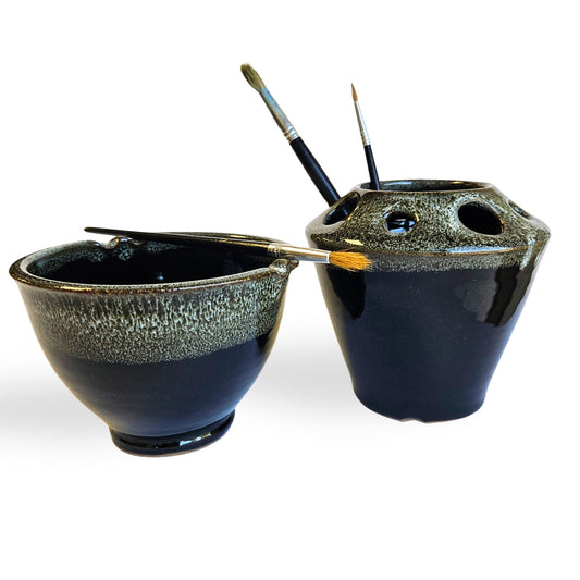 Cyber Monday DealBlack & White Speckle Ceramic Brush Holder + Rinse Bowl Set for Artists