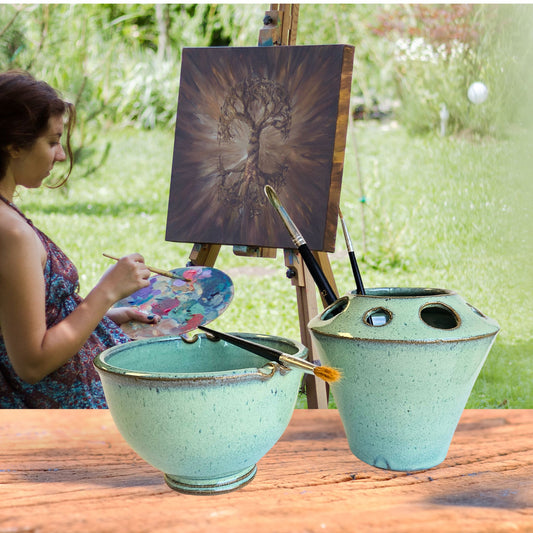Cyber Monday DealCeramic Painter’s Rinse Bowl & Brush Caddy Set – Sage Green