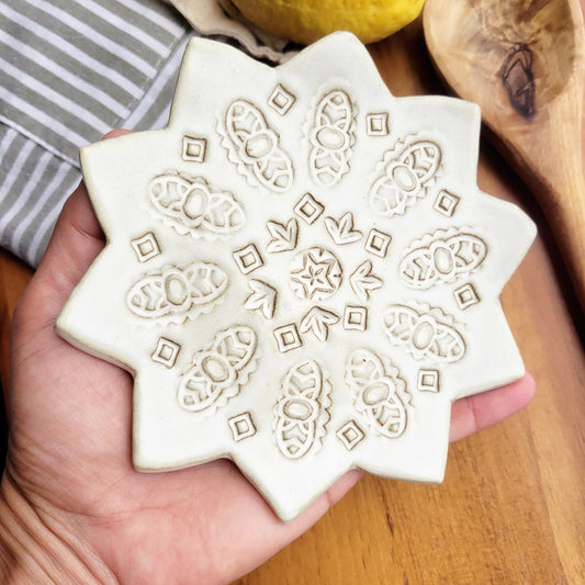 Flower Shaped Teaspoon Rest for Coffee Bar - Mini Ceramic Pottery Decor - Miniature Tea Bag Holder in Denim Blue