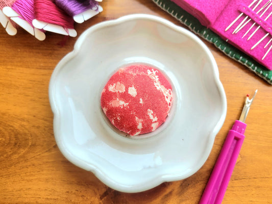 Flower Shaped Pincushion and Sewing Notions Dish Pink Tie Dye