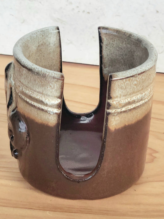 Fleur De Lis Sponge Holder Handmade Ceramic Pottery Stripes Brown Tan Speckled Glaze