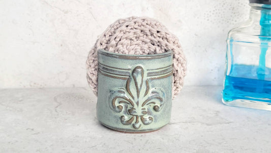 Fleur De Lis Sponge Holder Handmade Ceramic Pottery Stripes Green Glaze