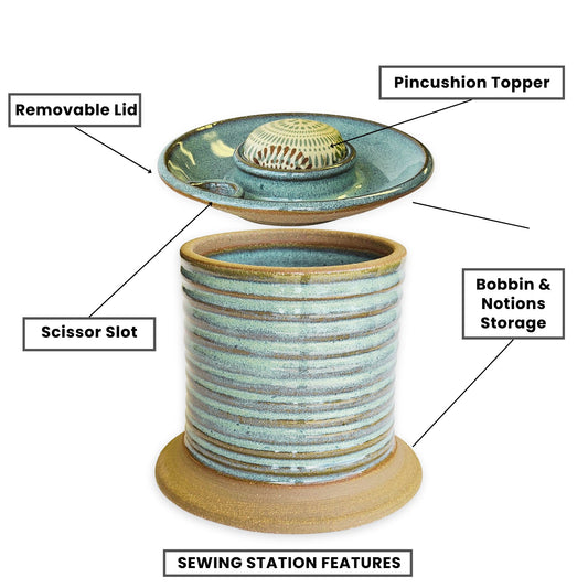 Handmade Ceramic Large KNIT Yarn Bowl with Needle Holes