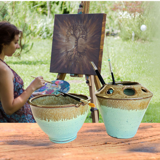 Cyber Monday DealGreen & Bronze Ceramic Artist Brush Caddy + Rinse Bowl Gift Set