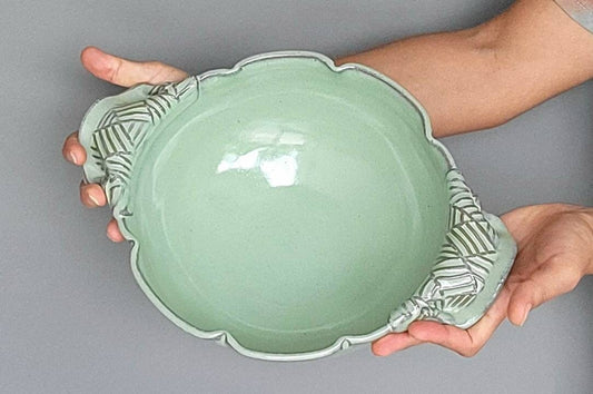 Handmade Scalloped Bowl – Rustic Serving Dish in Green