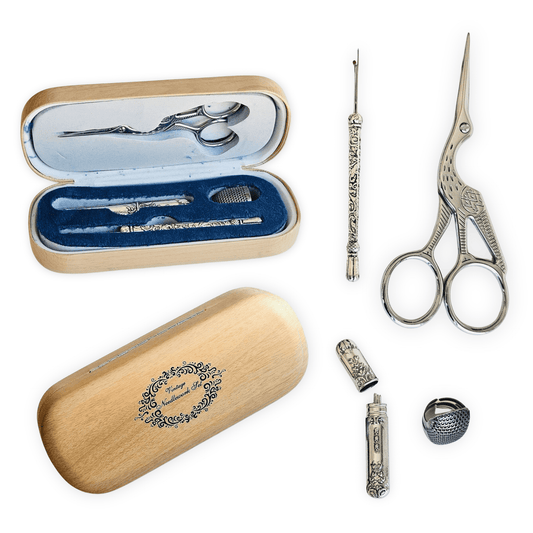 Victorian Style Embroidery Set – Silver Sewing Tools in Case