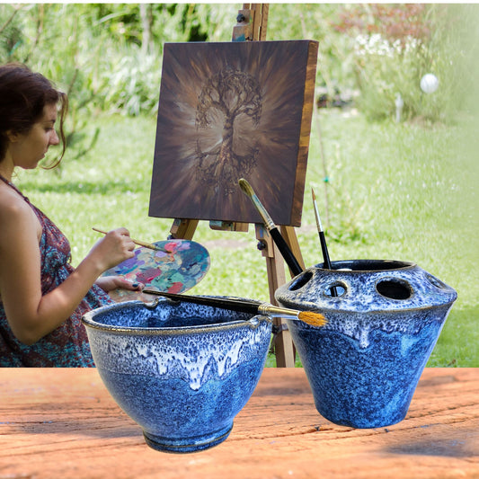 Cyber Monday DealWatercolor Rinse Bowl for Painting with Brush Rest – Blue White
