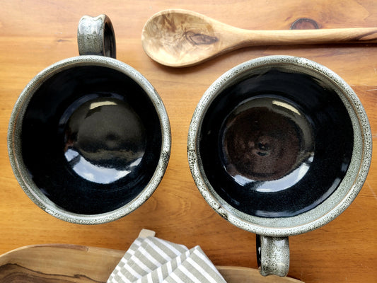 Cyber Monday DealSoup Bowls with Handles in Black White Speckles