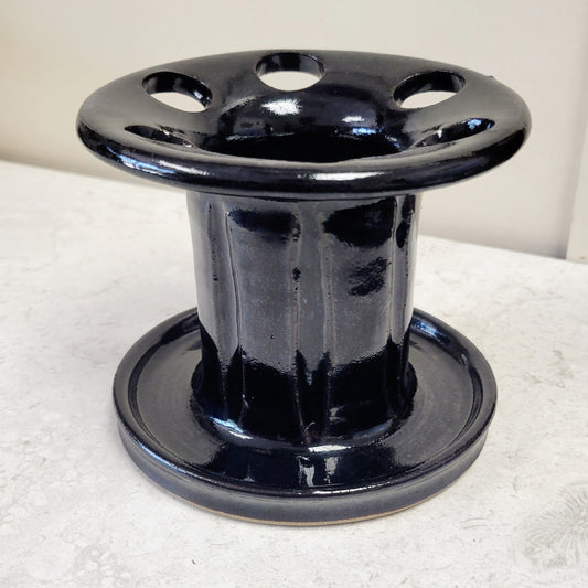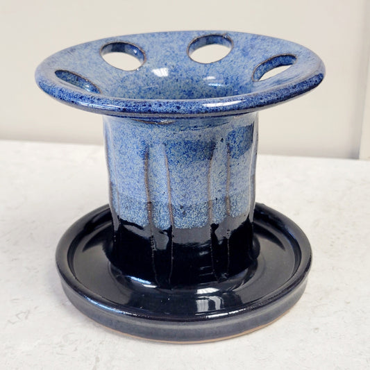 Pottery Countertop Razor Holder – 6 Slot Black Blue