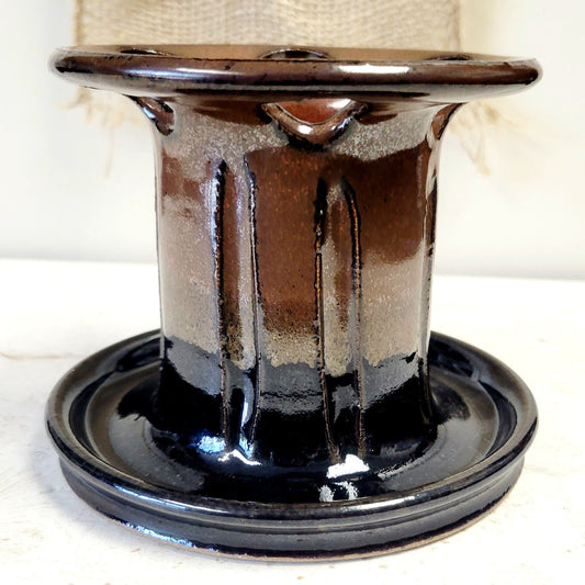 Handmade Ceramic Toothbrush Holder for Large Family - 6 Slot Tooth Brush & Paste Stand Rust Black