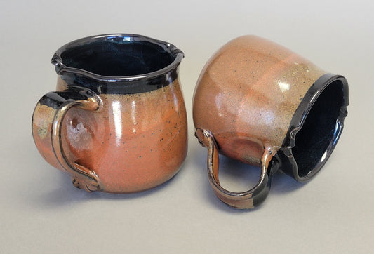 Set of 2 Large Concave handle Coffee Mugs in Glossy Black Rust Red