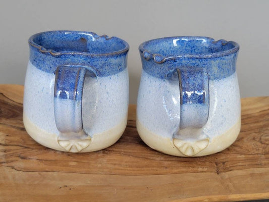 Set of 2 or 4 Large Off Round Coffee Mugs in Blue Yellow