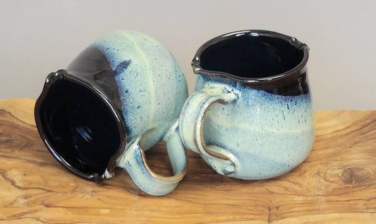 Set of 2 or 4 Large Concave handle Coffee Mugs in Glossy Black Green Blues