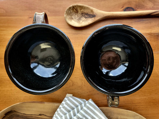 Large Soup Bowls with Handles – Handmade Ceramic in Rust Black