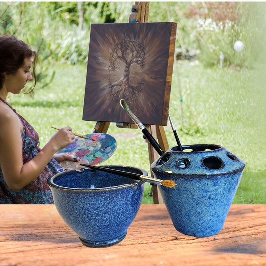 Painting Watercolor 2pc Set Bowl and Brush Caddy rest stand for painters Art Room rinse Cobalt Blue