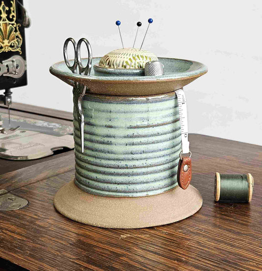 Handmade Sewing Caddy, Oversized Spool Storage in Blue