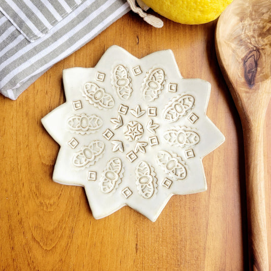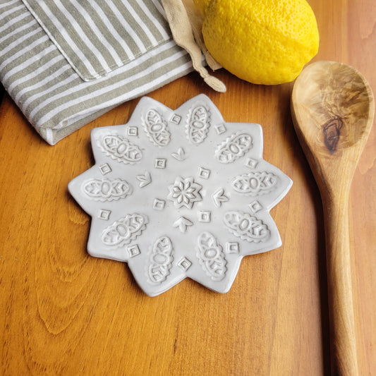 Rustic Flower Spoon Rest – Full Size Kitchen Dish White