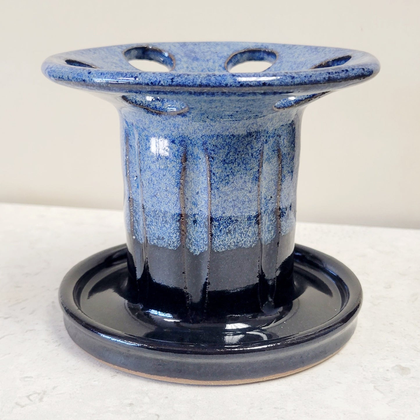 Pottery Countertop Razor Holder – 6 Slot Black Blue