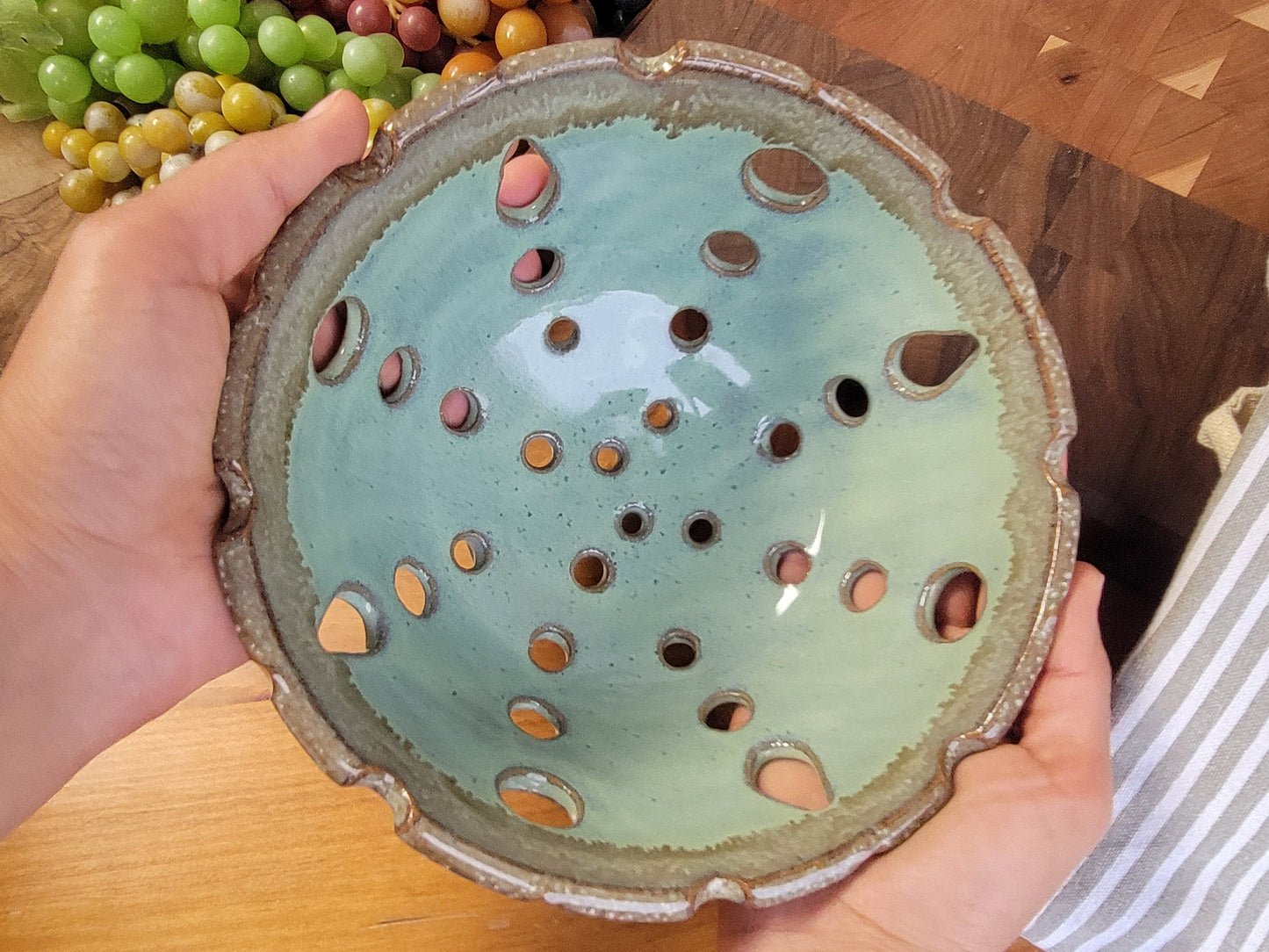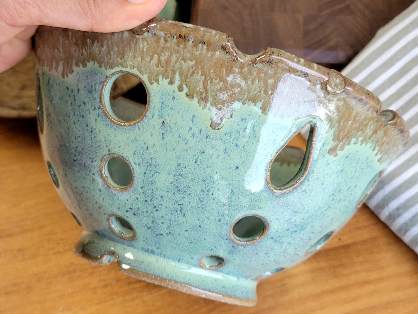 Welcome your family home to the warmth of a lovingly prepared meal, served with fresh berries in this charming little berry bowl. Handcrafted in the USA on the potter’s wheel from rich hazelnut brown stoneware clay, this bowl is not only beautiful but also practical. Rinse and serve berries right in the same bowl, with hand-carved drain holes and a specially designed foot for efficient draining. And when the meal is over, cleaning up is a breeze - just pop it in the dishwasher. This berry bowl is the perfect vessel for gifting and entertaining. Don’t miss out on the perfect addition to your farmhouse decor! Order today and start creating memories around the family dining table.