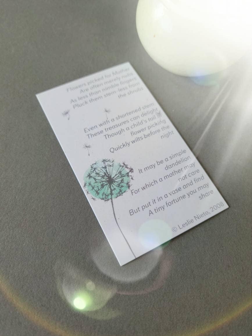 Make your gift even more meaningful with this Poem Card, the perfect addition for Mother’s Day or a baby shower. Printed on premium 3.5" x 2" card stock, this card shares a heartfelt story about the special bond between a mother and her child, capturing the beauty of moments spent together, like picking flowers and cherishing nature’s simple joys.