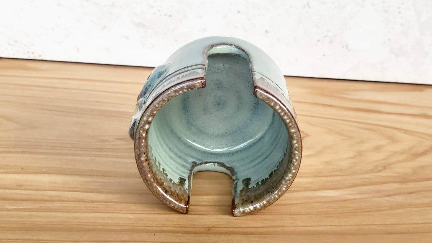 Fleur De Lis Sponge Holder Handmade Ceramic Pottery Green Bronze
