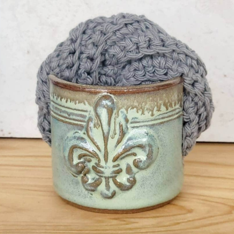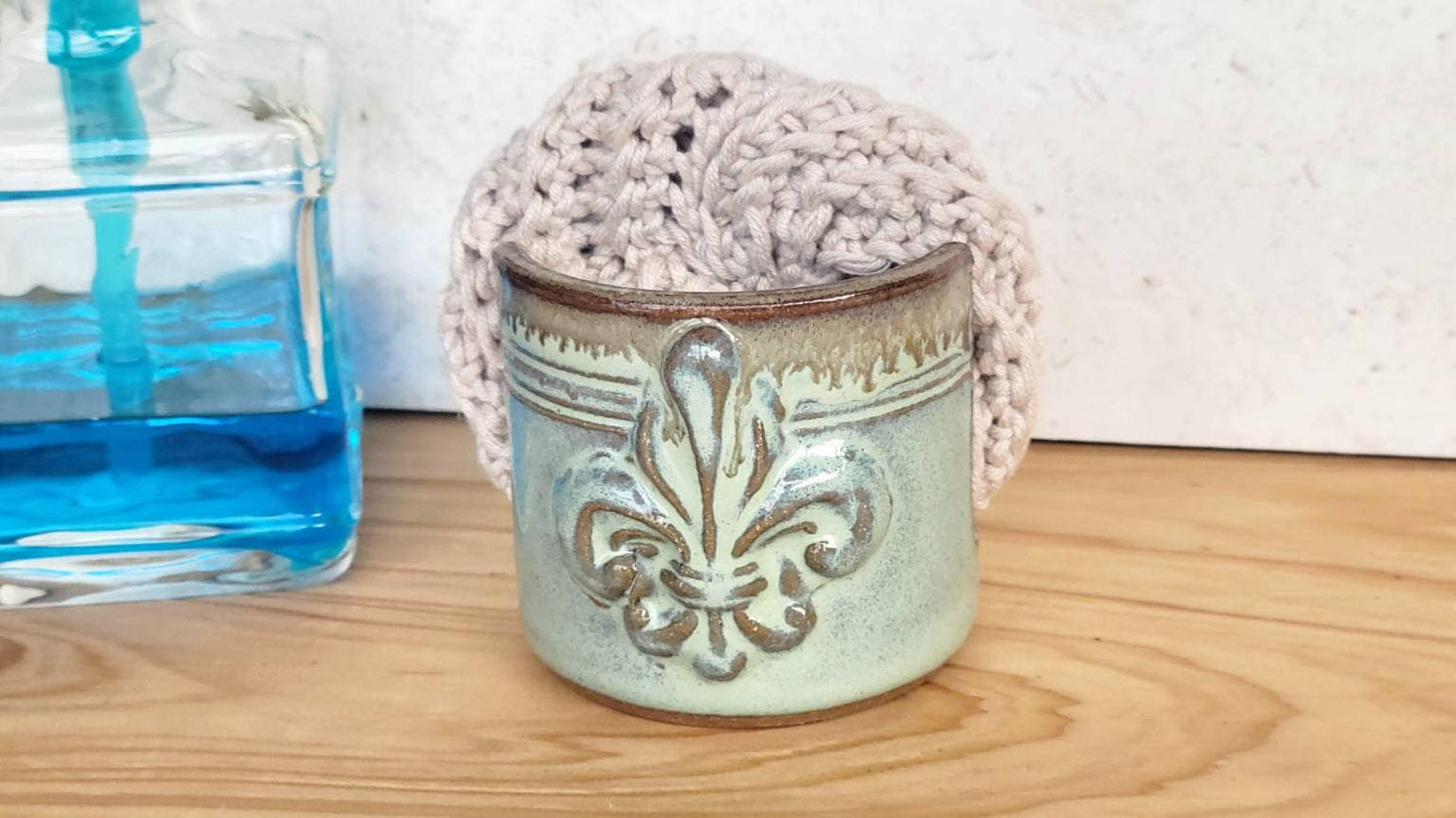 This listing is for one fleur de lis sponge holder the green & bronze glaze shown. The item you will receive is not the actual item pictured. These are handmade and slight differences will occur. Natural variations in glaze color and slight variations of form are what will make the piece you receive unique! This item is on hand and ready to ship.