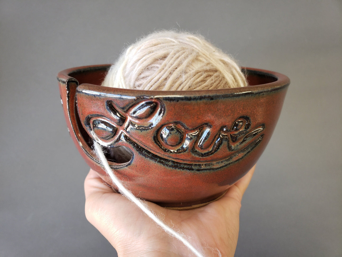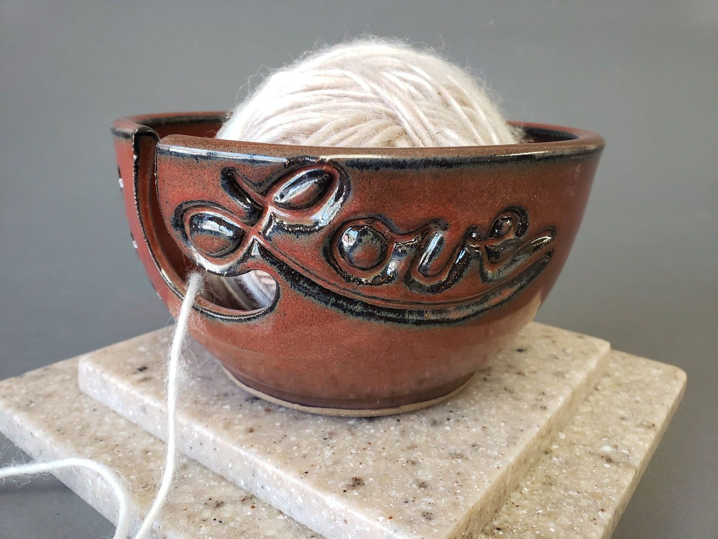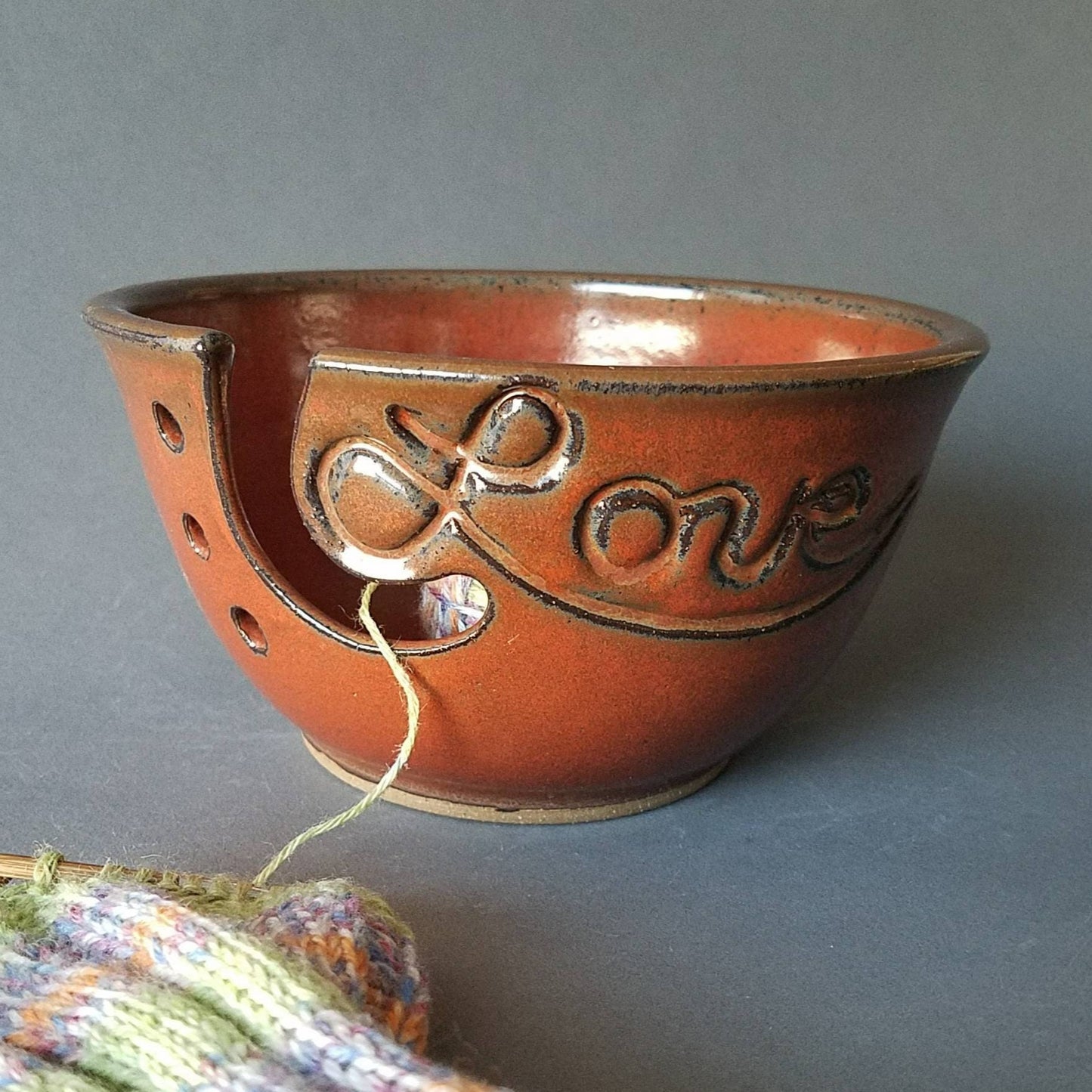 Love Saying Yarn Bowl – Knitting Crochet Gift in Rust Red