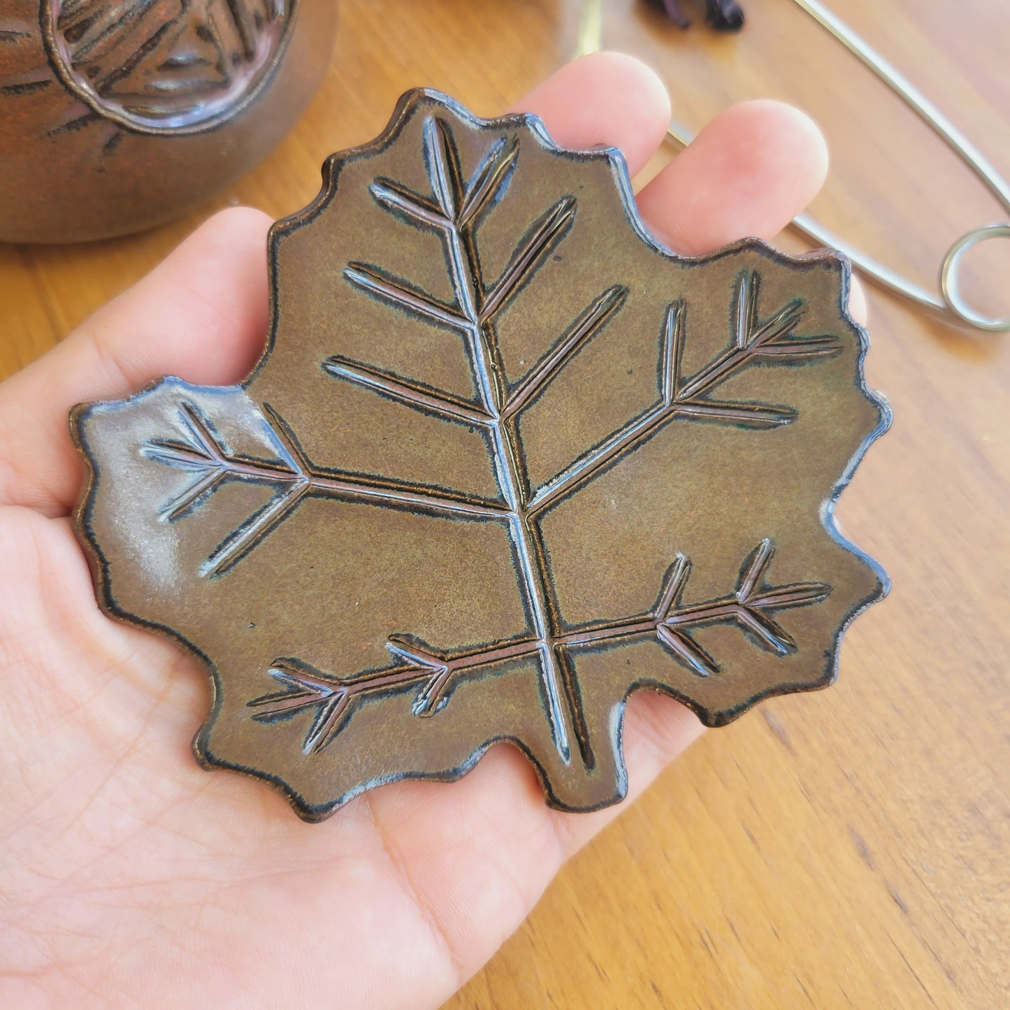 This listing is for one Maple Leaf mini spoon rest in rust brown and is not the exact item shown. The item you will receive is made in the same style. This is a handmade item of original design ~ lucky you! Slight variations in form and color will ensure the uniqueness of the pieces you receive.