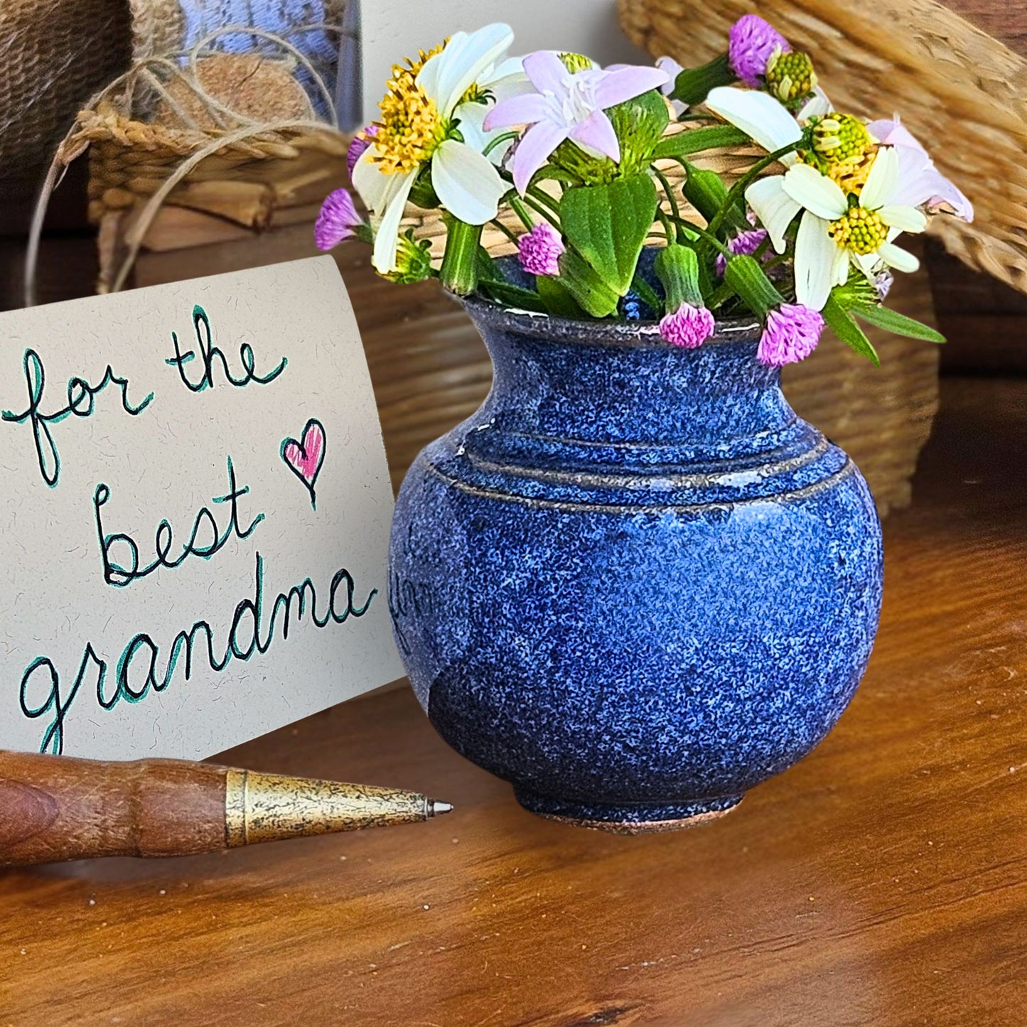 Mini Grandma Vase – Birthday Gift from Grandkids in Blue