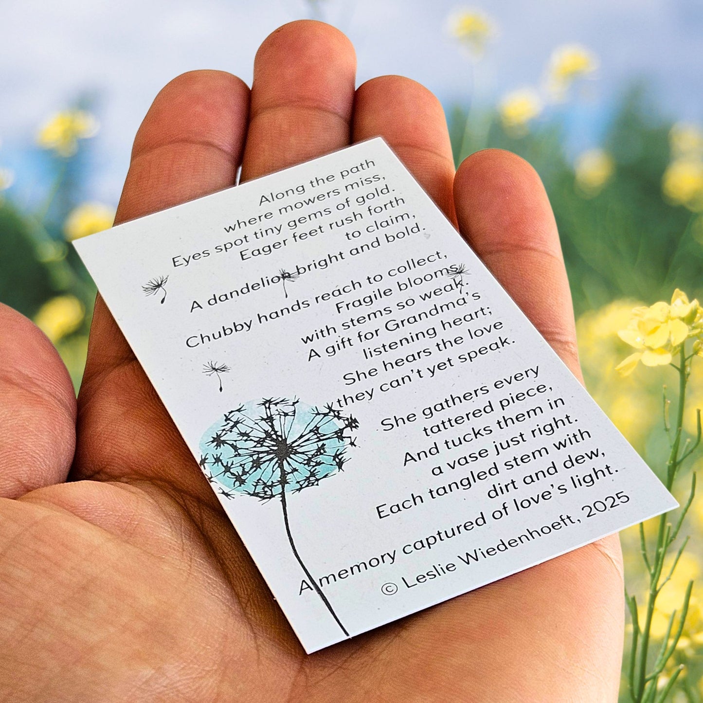 I wrote this poem with my own grandmother in mind. She was the kind of woman who made you feel like the most important person in the room, even if you were only 2 feet tall. If your Nana saves every little drawing, every pressed flower, and cherishes every moment. This tiny pot is more than just a vase for her—it’s a way for her to hold on to those little memories, and remind Grandma how much she’s loved.