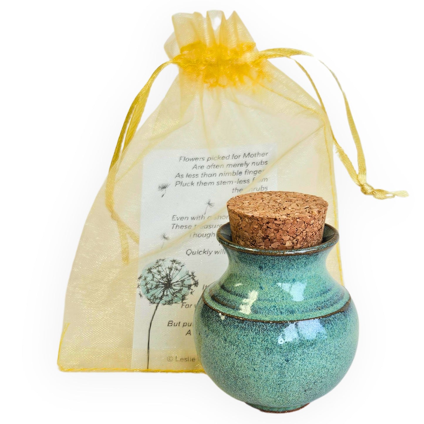 This handmade pot in the green finish can also be used as a keepsake memory jar to store baby’s first tooth and lock of hair. It comes with a poem card that tells the Mommy Pot story. The item you will receive is not the exact item shown. These are handmade and slight variations in color and form will make the piece you receive unique. This is on hand and ready to ship.