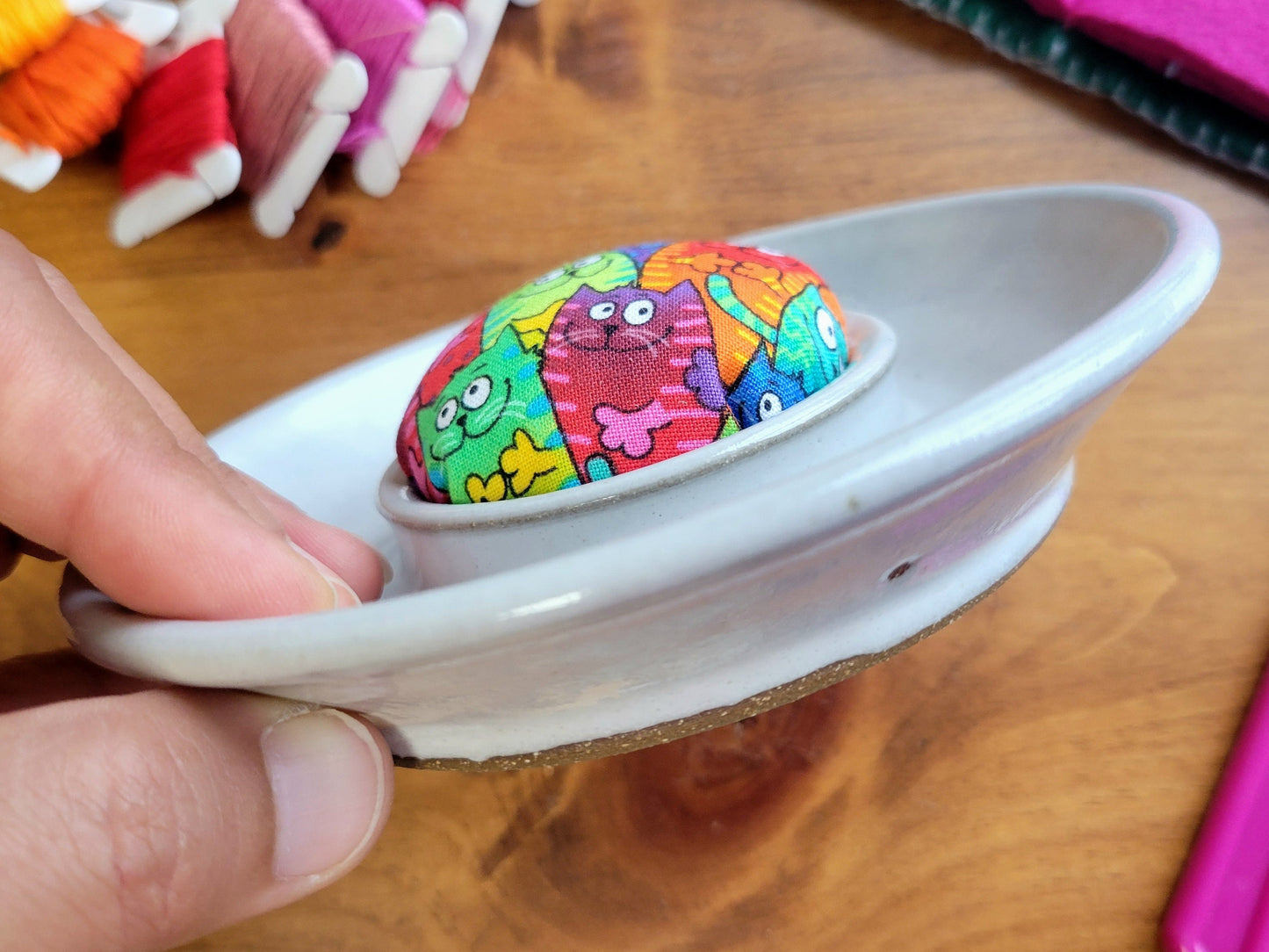 Handmade in Florida’s Space Coast on the potter's wheel using durable ceramic stoneware, this sewing notions holder is not just functional - it’s also decorative and adds a touch of style to your crafting suite.