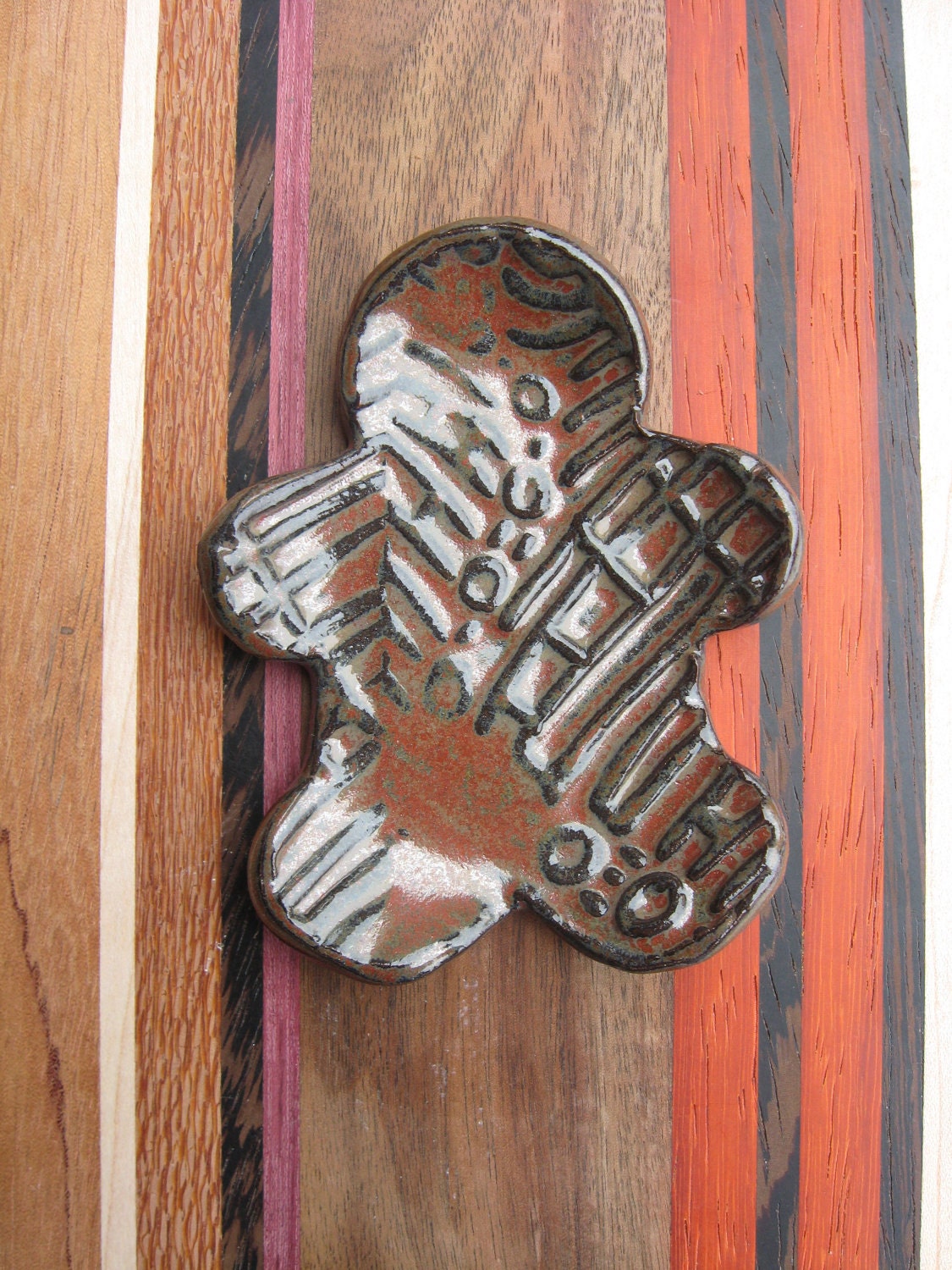 These delightful gingerbread men shaped spoon rests are textured with my own designs. They make great gifts for children or tea drinkers and make each cup of tea or hot cocoa special! They fit a standard kitchen teaspoon. They make wonderful tea bag cozy’s or lollipop rests. Textures on each gingerbread man are random - each little guy is unique. They are microwave and dishwasher safe.