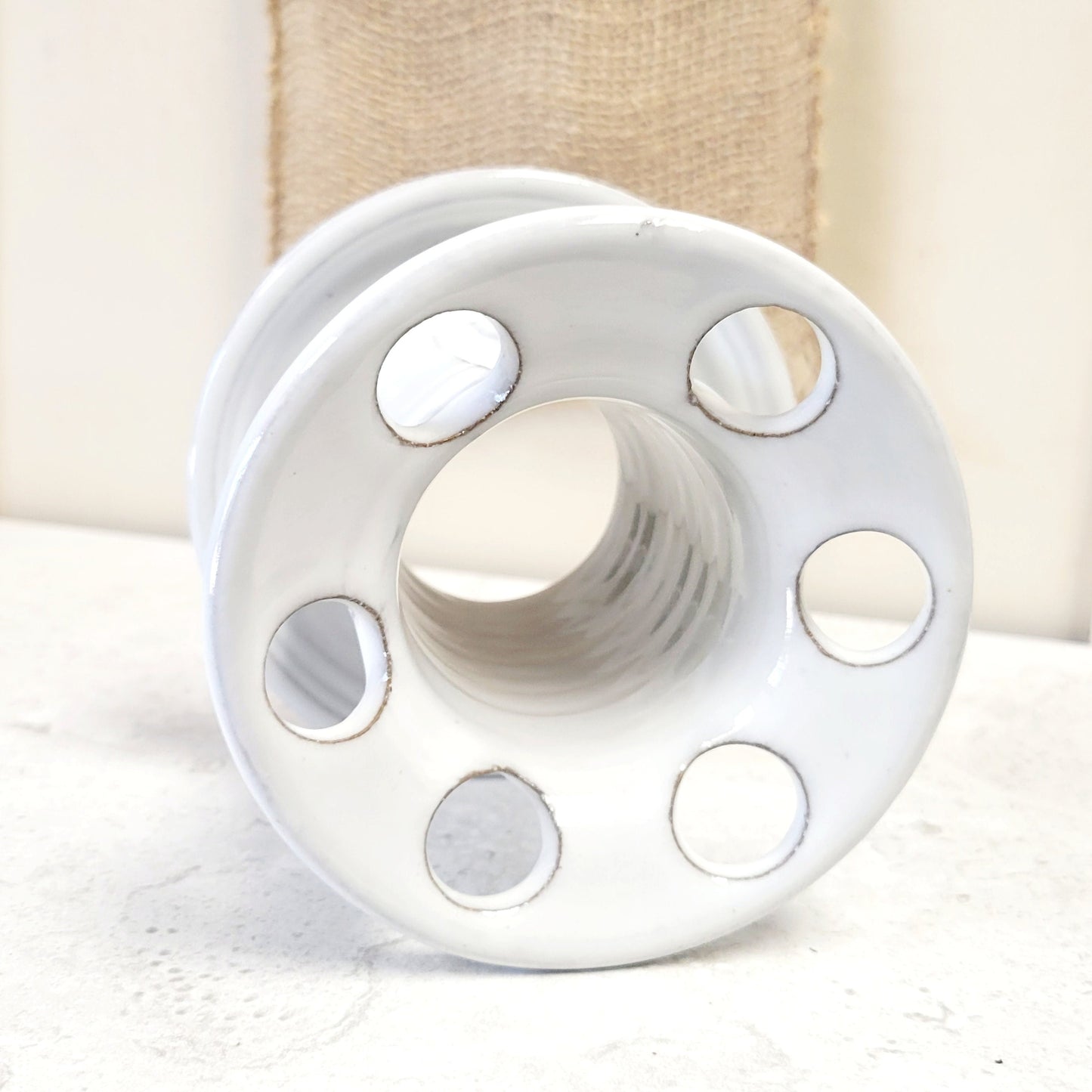 Crafted on the wheel in Florida from durable stoneware, this rust-proof holder blends a minimalist aesthetic with everyday practicality. The smooth white glaze and classic silhouette complement any bathroom decor, from coastal to modern farmhouse to contemporary. It also makes a thoughtful gift for new homeowners or anyone refreshing their bathroom with quality handmade pieces.
